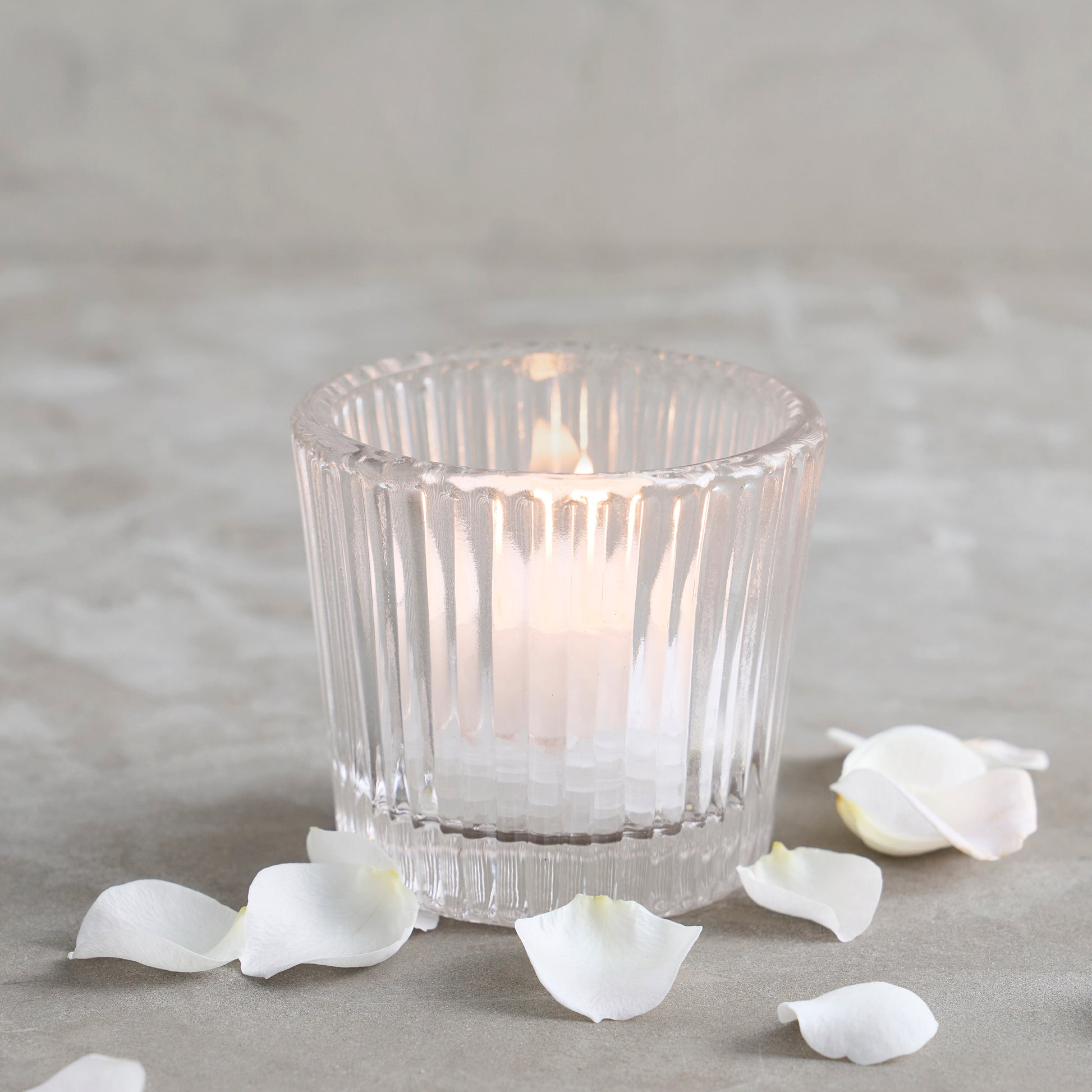 Transform any space from dim to dynamic with these pressed glass candle holders, which can accommodate tealights or votives within their textured walls.