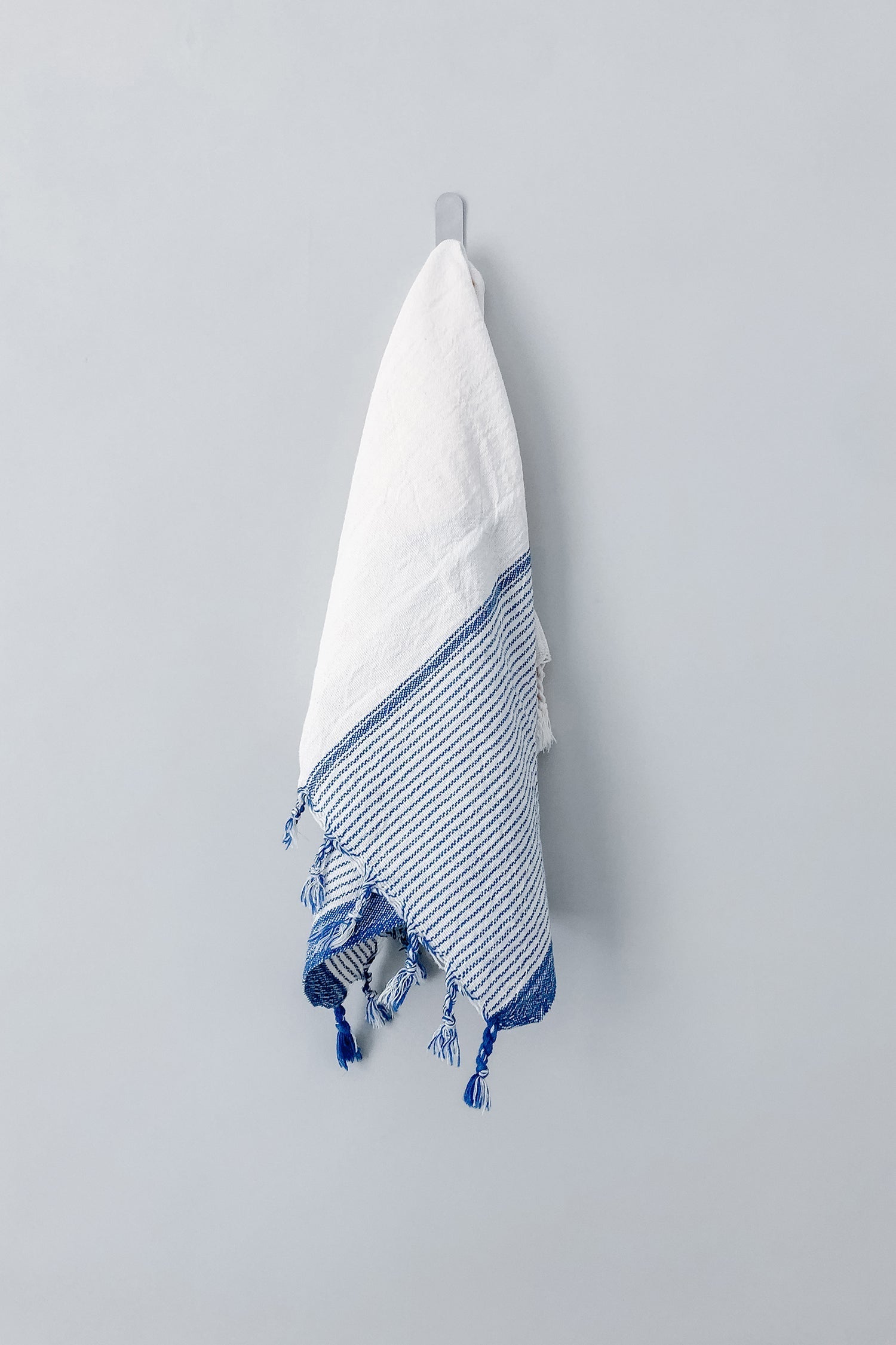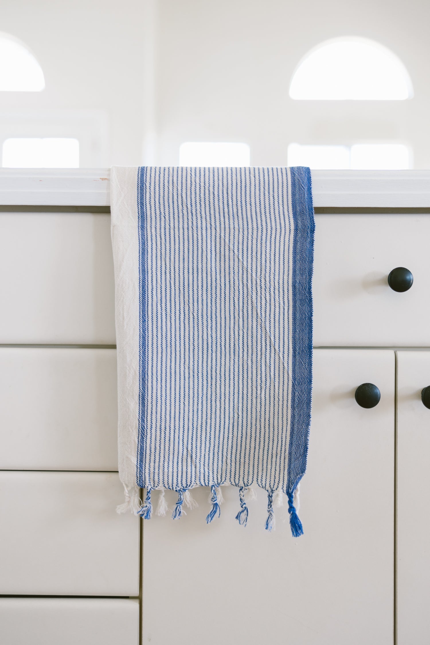 Handwoven by skilled Turkish artisans, our Ivory Blue Tribeca hand towel is lovingly crafted using ancient weaving techniques that have been passed down for generations. Woven from the highest quality premium cotton, our hand towels are lightweight, absorbent, and suited for everyday use. Perfect in both a kitchen or bathroom.